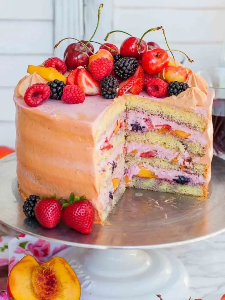 The Fruit Gâteaux Recipe is an elaborate preparation of a fruit and cream layer cake; but beats hands down on many cakes that you would buy from a store. This Gâteaux is a delicious creamy cake that is layered with fresh fruits and cream cheese.