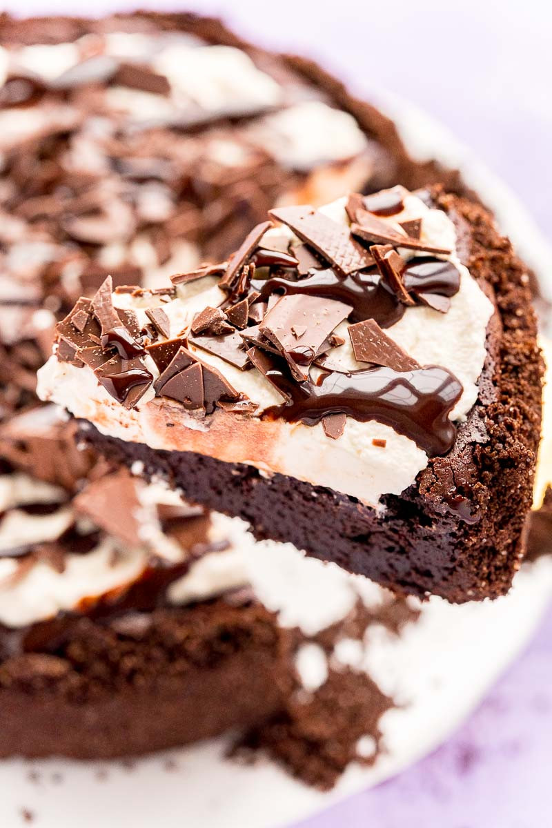 This easy, no bake mud pie has a decadent chocolate custard filling smothered in chocolate ganache, topped with whipped cream all in an irresistible Oreo crust.